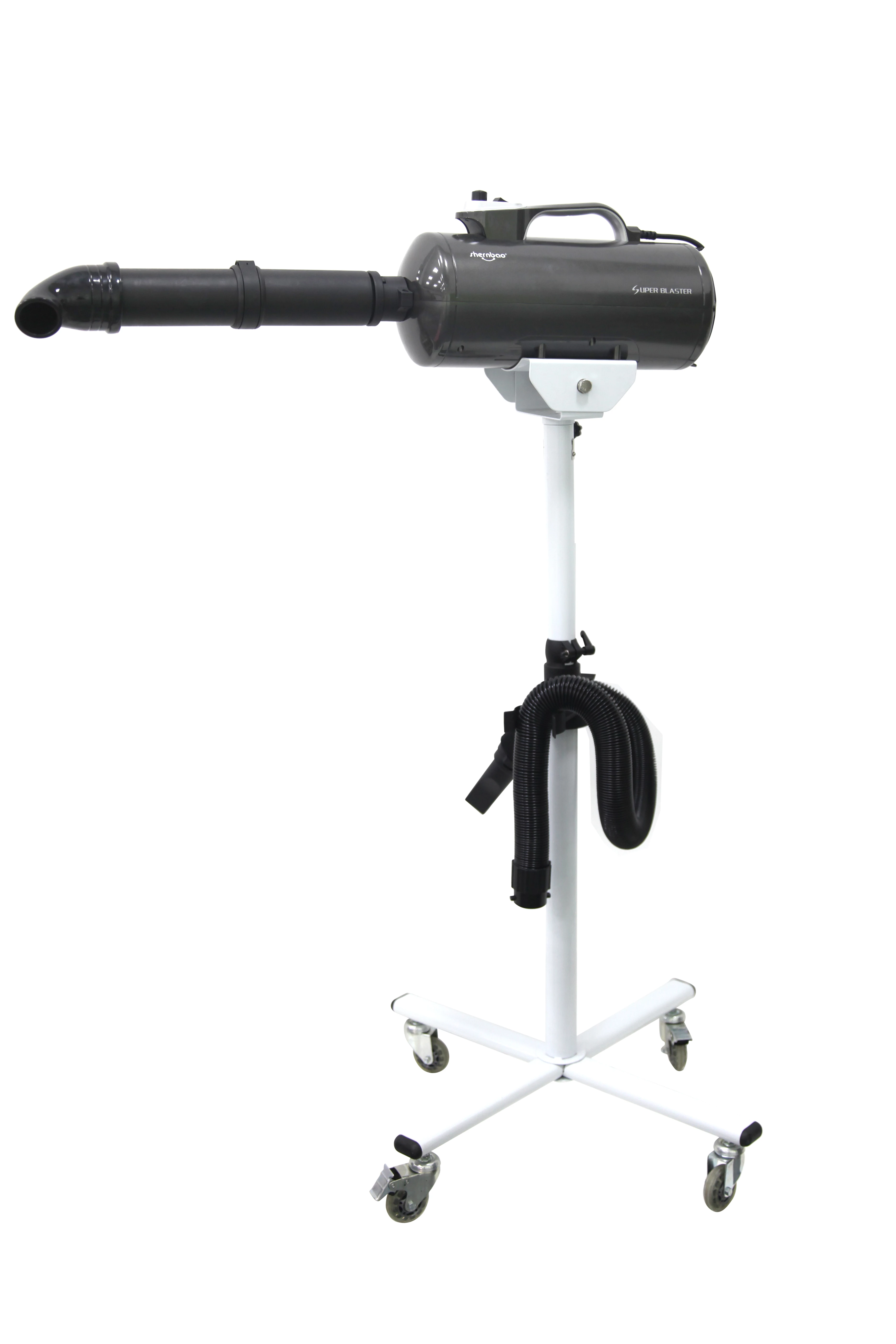 Výška stojana je nastaviteľná medzi 96 cm a 113 cm, čo poskytuje správnu polohu pre groomerov všetkých výšok a psov všetkých veľkostí. 360° otočná tryska a vertikálne otočný krk umožňujú presné nasmerovanie prúdu vzduchu – ľahko dosiahnete akúkoľvek časť psa bez pohybu celého stojana.