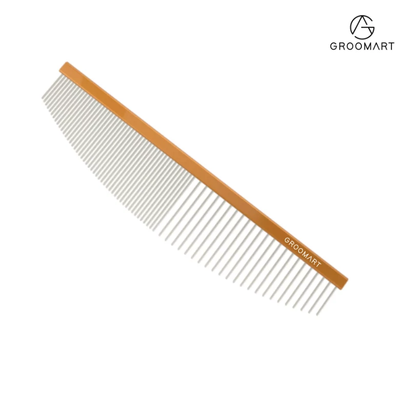 Tento hliníkový hrebeň v tvare polmesiaca má jemné špicaté ihly, ktoré pomáhajú dokončiť prácu na tvári a nohách a nadvihujú vlasy.