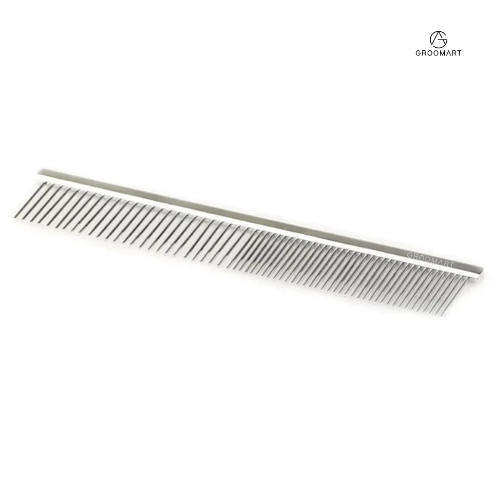 Hustota zubov 50/50 (riedke a husté), precízne vyrobený kovový hrebeň na profesionálnu starostlivosť o psa. Vyrobený z veľmi pevného a odolného kovu. Vhodný na úpravu (strihanie, česanie) psov všetkých dĺžok filtrov a veľkostí tela. Pohodlný hrebeň s okrúhlym profilom sa pohodlne používa, jeho zuby majú zaoblené konce.