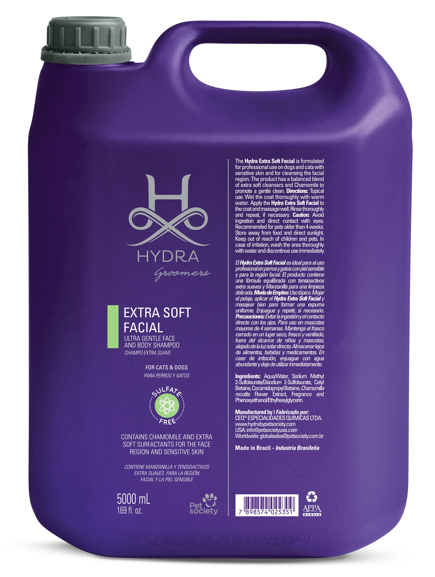 Hydra Groomers Extra Soft Facial Šampón je hypoalergénny šampón špeciálne vyvinutý pre profesionálne použitie v kynológii, ktorý poskytuje maximálnu jemnosť, bezpečné čistenie a prirodzenú hydratáciu prostredníctvom výťažku z harmanč eka a extra jemných čistiacich prostriedkov. Formula je obzvlášť účinná pre zvieratá s citlivou pokožkou, šteňatá a citlivé oblasti okolo tváre, kde je jemné čistenie kriticky dôležité.