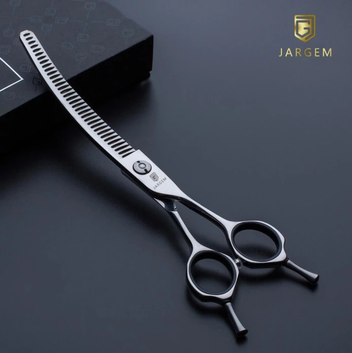 Zakrivené nožnice na sekanie Jargem CASPER s úzkymi a ostrými zubami. Vďaka kombinácii zúbkovaných a zahnutých hrán sú vynikajúce na všestranné použitie, na tvarovanie zakrivených plôch a na prácu na prechodoch. Vďaka tomuto riešeniu ho možno použiť na akýkoľvek typ srsti a dosiahnuť krásnu, prirodzenú úpravu, vrátane pudlov, maltézskych psíkov, shih-tzu, bichonov, kerryblue teriérov, lagotto atď. Odporúčame pre začínajúcich ošetrovateľov!